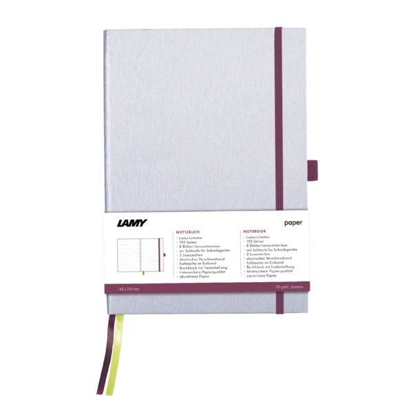 Notebook with Hardcover / DIN A5 or A6 / Lamy ruling / 192 pages, 90 g/m2, ivory / with pen loop, 2 ribbon markers and back paper pocket