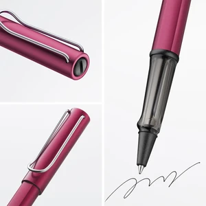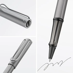 Lightweight rollerball pen with ergonomic grip made of high-quality transparent plastic. Distinctive metal clip and resistant body made of anodised aluminium. Including rollerball pen refill LAMY M 63 in size M in black.