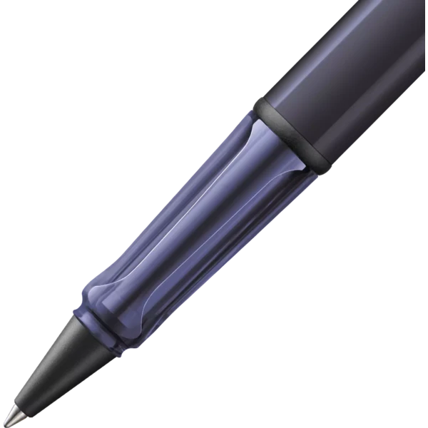 Lightweight rollerball pen with ergonomic grip made of high-quality transparent plastic. Distinctive metal clip and resistant body made of anodised aluminium. Including rollerball pen refill LAMY M 63 in size M in black.