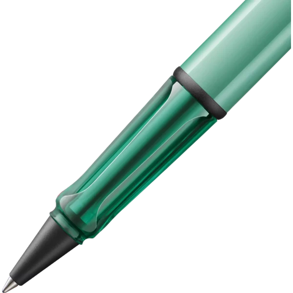 Lightweight rollerball pen with ergonomic grip made of high-quality transparent plastic. Distinctive metal clip and resistant body made of anodised aluminium. Including rollerball pen refill LAMY M 63 in size M in black.