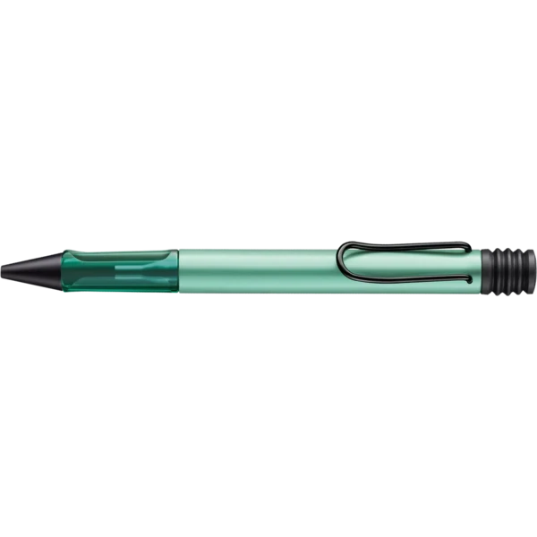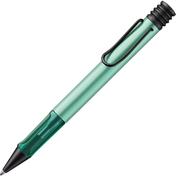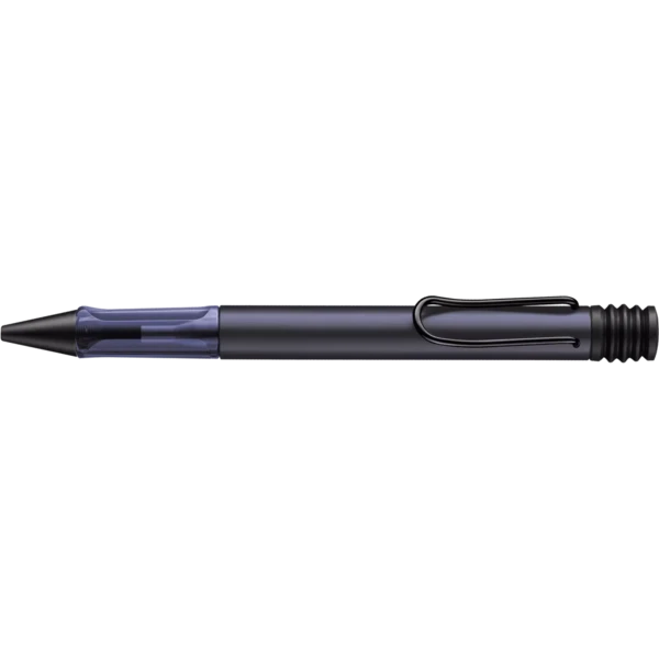 Lightweight ballpoint pen with ergonomic grip made of high-quality transparent plastic. Distinctive metal clip and resistant body made of anodised aluminium. Including giant ballpoint pen refill LAMY M 16 in size M in black.