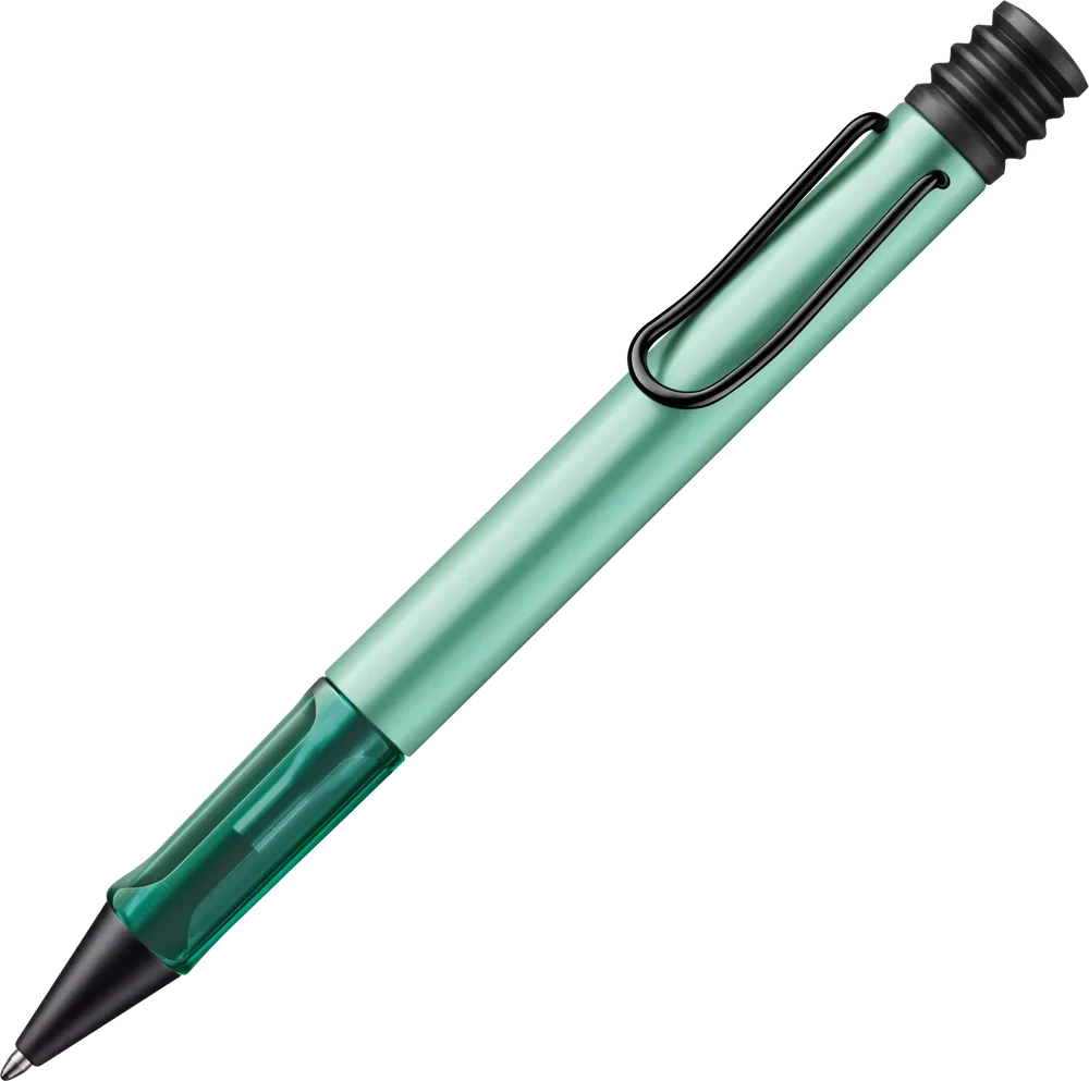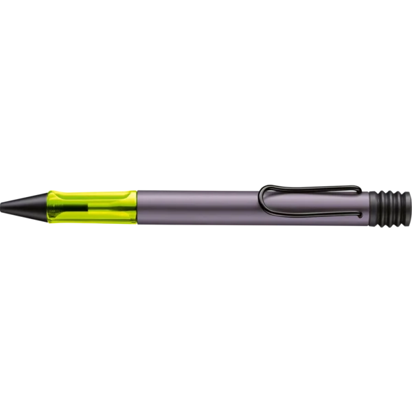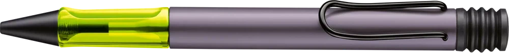 Lightweight ballpoint pen with ergonomic grip made of high-quality transparent plastic. Distinctive metal clip and resistant body made of anodised aluminium. Including giant ballpoint pen refill LAMY M 16 in size M in black.