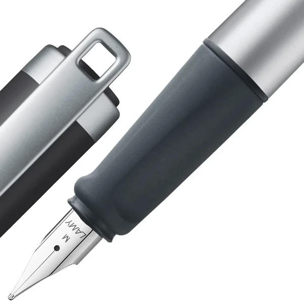 Comfortable fountain pen with polished steel nib. Non-slip, rubberised grip, high-quality plastic cap with clip and resistant body made of matt, natural-coloured anodised aluminium. Available in different nib widths and also for left-handers. Including 1 ink cartridge LAMY T 10 in blue. Recommended accessories: LAMY Z 28 converter for use with ink glass.