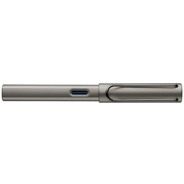 Fountain pen / aluminium anodised in ruthenium colour / metal clip and details plated with ruthenium / ergonomic grip / steel nib, black PVD / with LAMY T 10 blue ink cartridge / suitable for LAMY Z 28 converter / with metal case