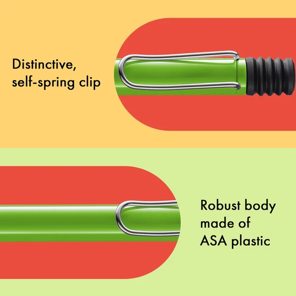 Fountain pen, icon, global success: the LAMY safari has been a beloved classic since its introduction in the 1980s and enjoys a cult status untypical for a writing instrument. Countless colours and ever-changing special editions make hearts beat faster - whether for the pencil case or the carefully curated fountain pen collection. The LAMY safari is more than the sum of its details: it is aesthetic, robust and individual. The distinctive, self-sprung clip keeps the writing instrument securely fastened in place. The housing, which is made of impact-resistant plastic, makes it a robust companion in any environment and the flattened shape prevents it from accidentally rolling away. Functional details such as subtly ergonomically shaped grip surfaces and a viewing window for checking the ink level blend naturally into the design and make the LAMY safari a modern classic.