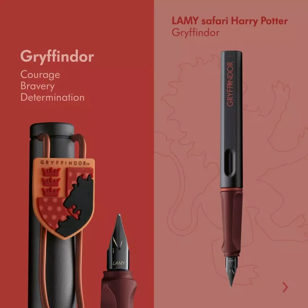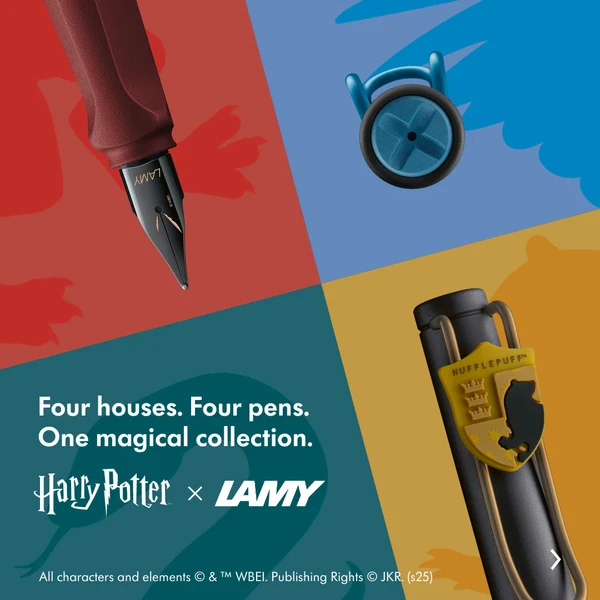 Fountain pen, icon, global success: the LAMY safari has been a beloved classic since its introduction in the 1980s and enjoys a cult status untypical for a writing instrument. Countless colours and ever-changing special editions make hearts beat faster - whether for the pencil case or the carefully curated fountain pen collection. The LAMY safari is more than the sum of its details: it is aesthetic, robust and individual. The distinctive, self-sprung clip keeps the writing instrument securely fastened in place. The housing, which is made of impact-resistant plastic, makes it a robust companion in any environment and the flattened shape prevents it from accidentally rolling away. Functional details such as subtly ergonomically shaped grip surfaces and a viewing window for checking the ink level blend naturally into the design and make the LAMY safari a modern classic. 100 points for Gryffindor – and Hufflepuff, Slytherin, and Ravenclaw! With the set from all four houses, you can explore the magical world of Hogwarts in the footsteps of Godric Gryffindor, Rowena Ravenclaw, Helga Hufflepuff, and Salazar Slytherin. The perfect gift for Harry Potter fans and a must-have for every collection. Don't miss out – limited quantities available.