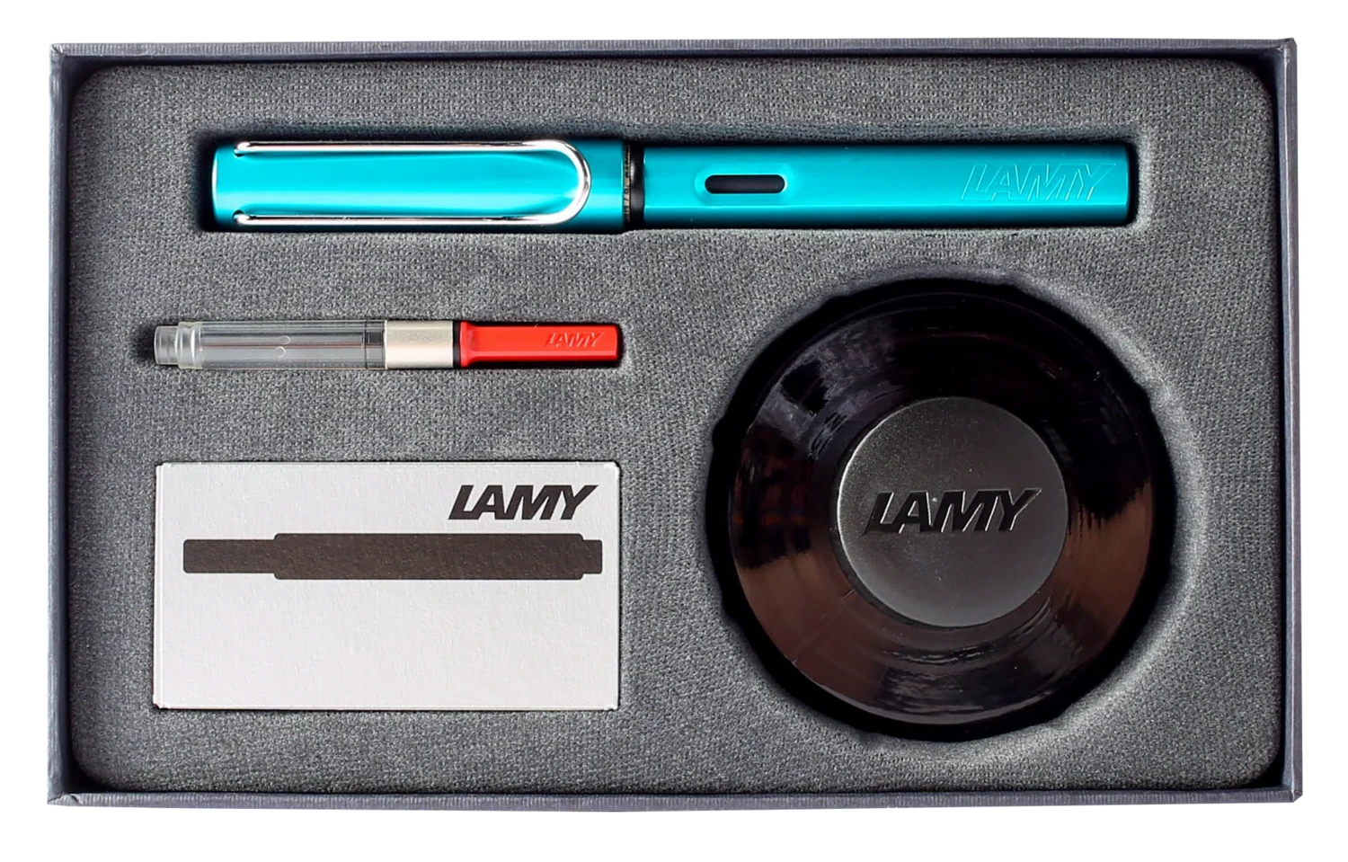 Fountain pen for everyday use with polished steel nib. Ergonomic grip and robust body made of resistant, matt ASA plastic. Including 1 ink cartridge LAMY T 10 in blue. Available in different nib widths and also for left-handers. Recommended accessories: LAMY Z 28 converter for use with ink glass.