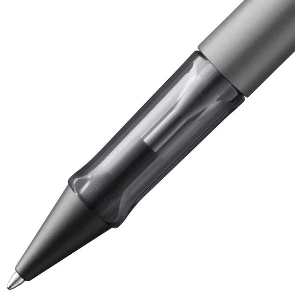 Lightweight ballpoint pen with ergonomic grip made of high-quality transparent plastic. Distinctive metal clip and resistant body made of anodised aluminium. Including giant ballpoint pen refill LAMY M 16 in size M in black.