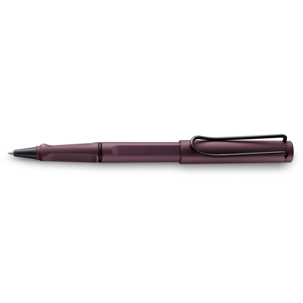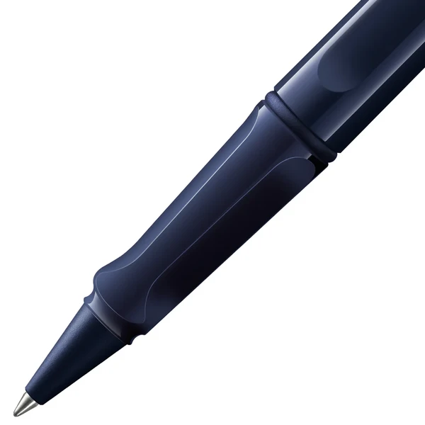 Rollerball pen for everyday use with ergonomic grip. Distinctive metal clip and resistant body made of high-gloss ASA plastic. Including rollerball pen refill LAMY M 63 in size M in blue (erasable).